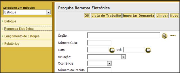 Informe Número da Guia Remessa enviada pelo setor de Suprimentos com os materiais. |